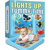 SplashEZ Lights Up Tummy Time Water Mat for Babies, Large Baby Water Mat Tummy Time for Sensory Play with LED Glowing Fishes, Inflatable Fun Play Pad for Infants & Toddlers 3 to 36 mo