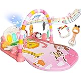 Baby Mat with Kick and Play Piano Music and Lights, Newborn Boy & Girl Gifts for 0 to 3 6 9 12 Months (Pink)