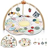 Baby Play Gym & Activity Mat, 5 Developmental Zones Tummy Time Mat with 4 Detachable Sensory Toys, Early Skills & Sensory Development Mat, Newborn Essentials Baby Shower Gift