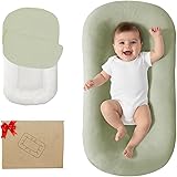 Lucakuins Baby Support Cushion, 0-24 Months Newborn Infant Support Cushion with Cover, Portable Tummy Time Mat for Home and Travel, Soft Cotton, Supervised Use, Baby Essentials Gift (Lovely Green)