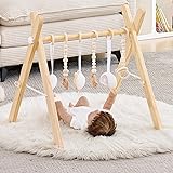 $16.99 (as of January 17, 2026 06:56 GMT +00:00 - More infoProduct prices and availability are accurate as of the date/time indicated and are subject to change. Any price and availability information displayed on [relevant Amazon Site(s), as applicable] at the time of purchase will apply to the purchase of this product.)Foldable Wooden Baby Play Gym, Activity Center with 6 Sensory Hanging Toys Natural Wood Montessori Toys for Babies Indoor Gym, No-Tool Assembly Newborn for Infant Motor Development