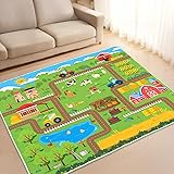 Play Mat for Floor, 71''x59'' Soft Quilted Playmat,Thick Foam Cushioned Floor Mat, Extra Large Non-Slip Backing for Kids Boys Girls Adults, Green Farm